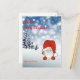 This charming Christmas holiday postcard features a delightful illustration of a gnome against a beautiful blue background. It also includes a lovely winter tree and an assortment of snowflakes, creating a perfect festive atmosphere for the season.