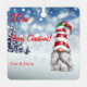 Christmas metal square ornament featuring a gnome, set against a serene blue backdrop. The design includes a winter tree and delicate snowflakes, evoking a festive holiday atmosphere. This charming ornament combines the classic appeal of Christmas with a whimsical gnome character, all presented within a square metal frame. The blue background complements the wintery theme, while the tree and snowflake details add depth and texture to the overall design.