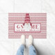 Get in the holiday spirit with this cute watercolor gnome Doormat featuring a Gnome wearing red and white fair isle in the centre of the phrase "gnome for the Holidays." The background is a red and white fair isle striped pattern.