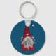 Cute winter gray bearded gnome wearing a plaid outfit with snowflakes and a heart on his cap keychain.
