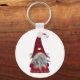 Cute winter gray bearded gnome wearing a plaid outfit with snowflakes and a heart on his cap keychain.
