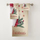 Gnome,Pine Tree Branches,Snowflakes,Gold Christmas Bath Towel Set