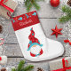 Gnome Red Modern Leaf Border Holiday Name Cute Small Christmas Stocking