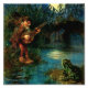 Heinrich Schlitt was a German painter and illustrator, known for his fantasy motifs that feature gnomes, dwarves, and faeries. His designs for beer steins are popular collectors items to this day. This painting is called “Gnome Serenade” and depicts a gnome playing a mandolin by the light of the moon while a frog watches.