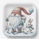 Gnome Skiing With a Bunny In Snowflakes Paper Plate