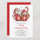 Gnome Virtual Christmas Party Quarantine Online Holiday Invitation features features a watercolor illustration of coffee mugs with Santa Claus and Mrs Claus, candy canes and snowflakes in festive red on a white background. Add your personalised information by editing the text in the text boxes provided for your Virtual Christmas Holiday Party Invitations.