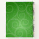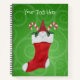 This spiral notebook is green with a swirled pattern with a red and white Christmas Stocking that has a gnome with a white beard wearing a pointy hat between two candy canes and clusters of holly leaves. Customise your text on the front with the template.