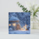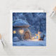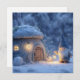 Gnome with a Lantern Outside a Snowy Stone Hut
