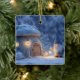 Gnome with a Lantern Outside a Snowy Stone Hut Ceramic Ornament