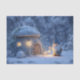 Gnome with a Lantern Outside a Snowy Stone Hut Tissue Paper
