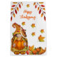 This design features the orange text "Happy Thanksgiving" with a girl gnome with pumpkins, apples, and autumn leaves. It is perfect for the Thanksgiving celebration.