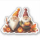 A Cute Fall sticker with gnomes and pumpkins and colourful autumn leaves.