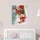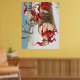 Funny vintage Christmas illustration of little white bearded gnomes dressed like Santa, dragging a cut tree trunk through the snow. Published by L. Prang & Co.