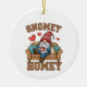 This charming design depicts a cozy scene featuring a gnome and a cat on a couch. Above the gnome, the word "GNOMEY" is prominently displayed in large, bold, brown block letters. Below the gnome, the word "HOMEY" is written in the same distinctive style, reinforcing the cozy and domestic atmosphere. Adding to the heart warming theme, red hearts are scattered throughout the design, symbolizing love and affection.