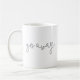 Funny mug for introverts, antisocial types and anyone who's rather not be approached before finishing their first cup of coffee features "go away" in handwritten script lettering.