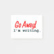 Give this mouse pad to any writer in your life. He or she can tack these Post-Its to their door to alert their family or housemates that they are working. The words "Go Away" are coloured in bright red for easy visibility.
