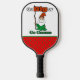 Red and Green - like a Strawberry - Super awesome, colourful and fun pickleball paddle. A cute red, and green gnome with a big white bushy beard tells you to go big or go gnome on the pickleball court - take risks, shoot for the moon, go big or home. Awesome gnome themed gift for your dad, mum, sister, brother, aunt uncle, cousin, nana, grandpa, boss, work mate or friend who love to play pickleball. Red and green polka dots.