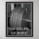 A black and white poster, with five weight plates on the bar. It has a black and grey border, with the phrase "GO BIG OR GO HOME!" written on it. A must have poster for anyone who lifts the BIG weights! Weightlifting, Exercise, Gym, Motivational.