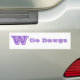 Bumper sticker shown in purple/white with text "Go Dawgs"