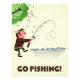 Go fishing , cute cartoon vintage or retro fisherman travel poster.