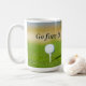 Get ready fore your game (golf pun intended) with this motivating custom "Go for it." golf game quote coffee mug.