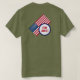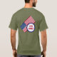 Go Joe! written in bright red military stencil font within a white circle. American flag as the backdrop. This shows the design on olive drab, but the shirt is available in several sizes and colours.