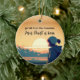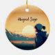 Christian personalised Christmas ornament depicts a girl looking at a sunset over the mountains. It features the title of the spiritual song, "Go tell in on the mountain, Jesus Christ is born." Customise the back with a name or details of your choice.