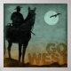 contemporary western original design of a cowboy on his horse, contemplating the western vista