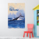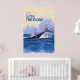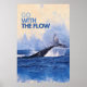 A whale tail emerges from the ocean, creating a striking splash against a backdrop of blue waves. The text 'Go with the Flow' appears in bold above the scene.