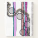 This useful 8.5 x 11 inch notebook is ideal for office, home or school and can be personalised with your name. It is an abstract watercolour and pen design of stripes and circles on a white background, with pink, apricot and blue stripes broken by a doodle style pattern of flowing circles in black and grey. The artwork is original, and only available from The Art of Being Beth.