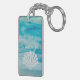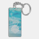 Beautiful rectangle double sided keychain for beach lovers featuring Go With The Tide Ocean Waves Diamond Seashell design