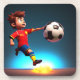 Pictured in a animated 3D design is a soccer player with a soccer ball with fire beneath him