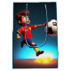 Pictured in a animated 3D design is a soccer player with a soccer ball with fire beneath him