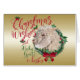 CUSTOMIZE THIS Christmas Card- Adorable Portrait painting of an Angora goat kid with Christmas greenery, holly and berries, a red bow and mistletoe - with ornate calligraphy text that reads: Christmas Wishes and Baby Goat Kisses all on a removable gold background - remove background to reveal white or choose any colour background you like from the customise colour picker - Perfect for the goat lover in the family - won't they be surprised to see this unique Original Christmas goat Christmas Card in their mailbox. A ©goatlady GetYerGoat™ original.