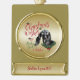CUSTOMIZE THIS Christmas Ornament- Adorable Portrait painting of a Nubian baby goat with Christmas greenery, holly and berries, a red bow and mistletoe - with ornate calligraphy text that reads: Christmas Wishes and Baby Goat Kisses all on a removable gold background - remove background to reveal white or choose any colour background you like from the customise colour picker - Perfect for the goat lover in the family - won't they be surprised to see this unique Original Christmas goat on their Christmas Tree Christmas morning. A ©goatlady GetYerGoat™ original.