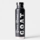 GOAT Greatest Of All Time personalised Water Bottle. Personalised black and white drink bottle for him or her. Funny Birthday gift idea for men and women. Bold typography design. Create cool gifts for friends, family, coworker, colleague, employee, boss, sports coach, trainer, best dad, great husband, wife, teacher and others. Fun appreciation gift idea.