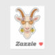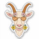 A humourous and whimsical sticker depicting a goat's head, wearing sunglasses and a wide smile. The goat's eyes are animated with a playful twinkle, and its pointed horns are adorned with colourful flowers. The overall design is cheerful and lighthearted, perfect for adding a touch of fun and humour to any message or social media post.