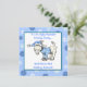 This funny invitation is perfect for your holiday Ugly Sweater party! Design features a light blue background covered in snowflakes in shades of blue and white. In the centre area is a white square with darker blue trim. Inside the square is a light grey goat wearing an ugly blue holiday sweater covered in a snowflakes pattern. The snowflakes are in shades of blue and white. The goat is also wearing a matching Christmas Santa hat. There is text in blue font that says, "It's An Ugly Sweater Holiday Party....And We're Not Kidding Around!" as a play on words for the young goat. The reverse side of the invitation has the same blue snowflake background and customisable text in blue font.