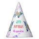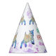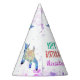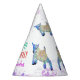 Colourful, cute jumping baby goat in vibrant pink, purple, blue, orange, yellow and aqua watercolor. A cute farm animals kids any age birthday party party hat design. This fun party decor is easy to personalised to create unique party supplies suitable for children and adult goat lovers. Colourful psychedelic goat original illustrations by artist Catherine Sweetman
