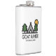 The flask itself is fine. It’s a cheap flask, obviously bought in bulk, however am prepared to overlook that. Given that it is a personalized item, I would have liked to have seen gift boxing instead of the generic packaging. Terrible printing, and/or quality. It’s a cheap, tacky vinyl. It is not cut straight and is also applied in a way that it is overhanging the bottom, causing the glue to catch on items and it will eventually roll and tear, damaging the wrap.