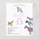 For the girl that loves animals celebrate with these cute colourful goats in vibrant watercolor pink, purple, blue, orange, yellow and aqua. A cute farm animals 13th birthday party invitation with baby goats and goats standing on goats. This fun party invitation is easy to personalised to create a unique party invitation suitable for children and adult goat lovers. Colourful psychedelic goat original illustrations by artist Catherine Sweetman