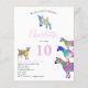 A collection of colourful, cute goats in vibrant pink, purple, blue, orange, yellow and aqua. A cute farm animals budget 10th birthday party invitation with baby goats and goats standing on goats. This fun party invitation is easy to personalised to create a unique party invitation suitable for children and adult goat lovers. Colourful pink themed psychedelic goat original illustrations by artist Catherine Sweetman