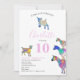 A collection of colourful, cute goats in vibrant pink, purple, blue, orange, yellow and aqua. A cute farm animals 10th birthday party invitation with baby goats and goats standing on goats. This fun party invitation is easy to personalised to create a unique party invitation suitable for children and adult goat lovers. Colourful pink themed psychedelic goat original illustrations by artist Catherine Sweetman