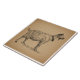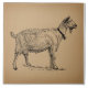 Goat with Bell Illustration Antique Aged Brown Ceramic Tile