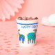 These custom party supplies featuring cute, realistic style illustrations of goats wearing pyjamas making them perfect for slumber parties. These paper cups are ready to be customised with your own message in bright blue lettering.
