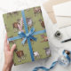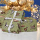 This gift wrap has a herd of tiny goats in all different colours on a muted green background.