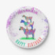 Colourful, cute watercolor goats in vibrant pink, purple, blue, orange, yellow and aqua. A cute farm animals kids any age birthday party paper plates with goats standing on goats. This fun party decor is easy to personalised to create a unique party supplies suitable for children and adult goat lovers. Colourful psychedelic goat original illustrations by artist Catherine Sweetman