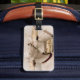 I was happy with the acrylic tag but it came with a thin leather strap to attach the tag to luggage (like a cat collar). I replaced the strap with a metal ring off of a key ring as the leather strap would come undone or break easily as luggage is sometimes handled without much care by airlines. Printing is great. Colours and positioning of the design I put on the tag were perfect. Very pleased.