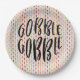 Dress up your holiday gathering with this rustic yet still fun and festive paper plate which features multi colour oval dot background and the words 'Gobble Gobble'. These paper plates will look gorgeous at any placesetting whether formal or fun - especially great plate for kids' tables. They also make clean up a breeze allowing one to spend more time mingling with guests. Visit our Holiday Table Collection for other coordinating items.