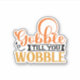This sticker features the text "Gobble Till You Wobble" in an orange polka dots background. It is perfect for Thanksgiving and fall or autumn. It can also be an appreciation gift for friends and family members.
